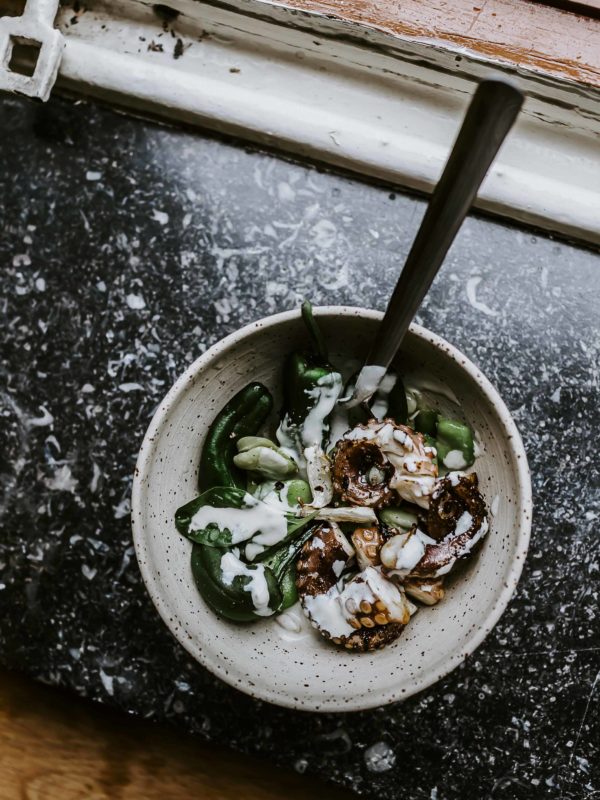 „Minimalismus-Küche“: Dinkelrisotto mit Sellerie, Walnüssen und Hafercreme.Minimalismus-Küche im GU Verlag In Bild, Food, Rezepte