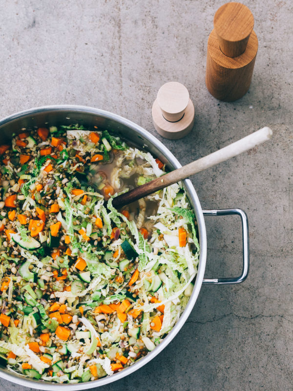 Minestrone mit Hülsenfrüchten, Wirsing und Parmesan