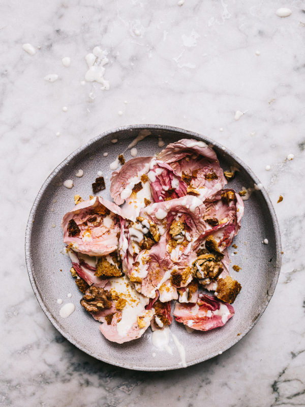 Insalata di Radicchio (mit Blauschimmeldressing, Walnüssen & Croutons)